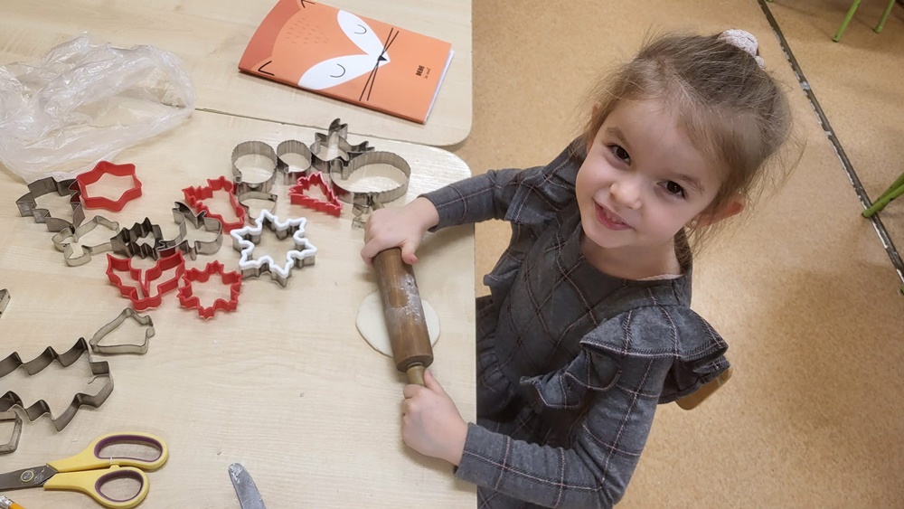 - Nauka piosenek świątecznych oraz kolęd: „Mikołaj”, „Przybieżeli do Betlejem”, „Nadchodzą święta”.