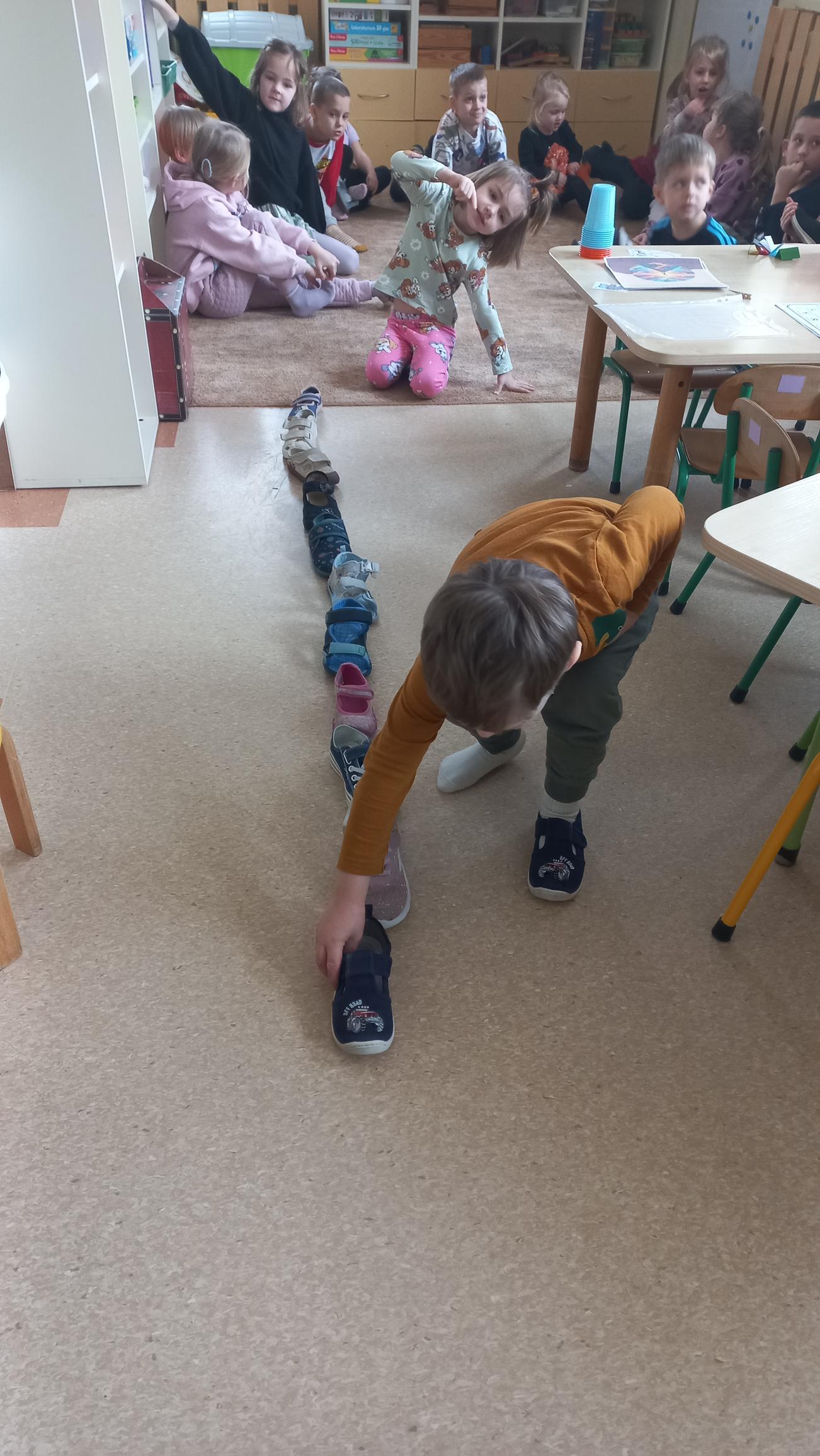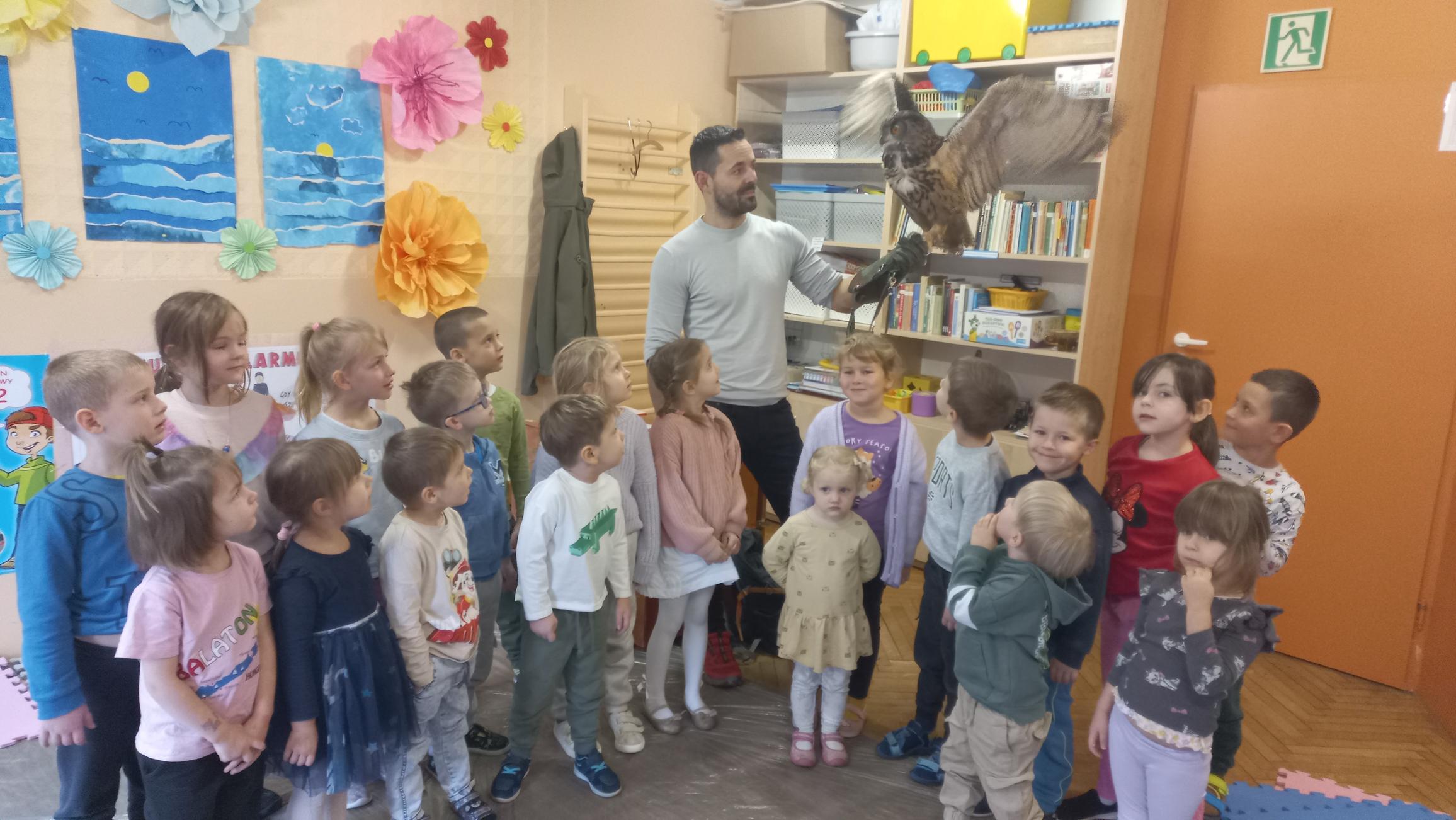 - Realizacja zabaw i ćwiczeń ruchowych – rozwijanie zmysłu równowagi, ćwiczenie prawidłowej postawy ciała, wyczucie przestrzeni podczas zabawy w grupie.