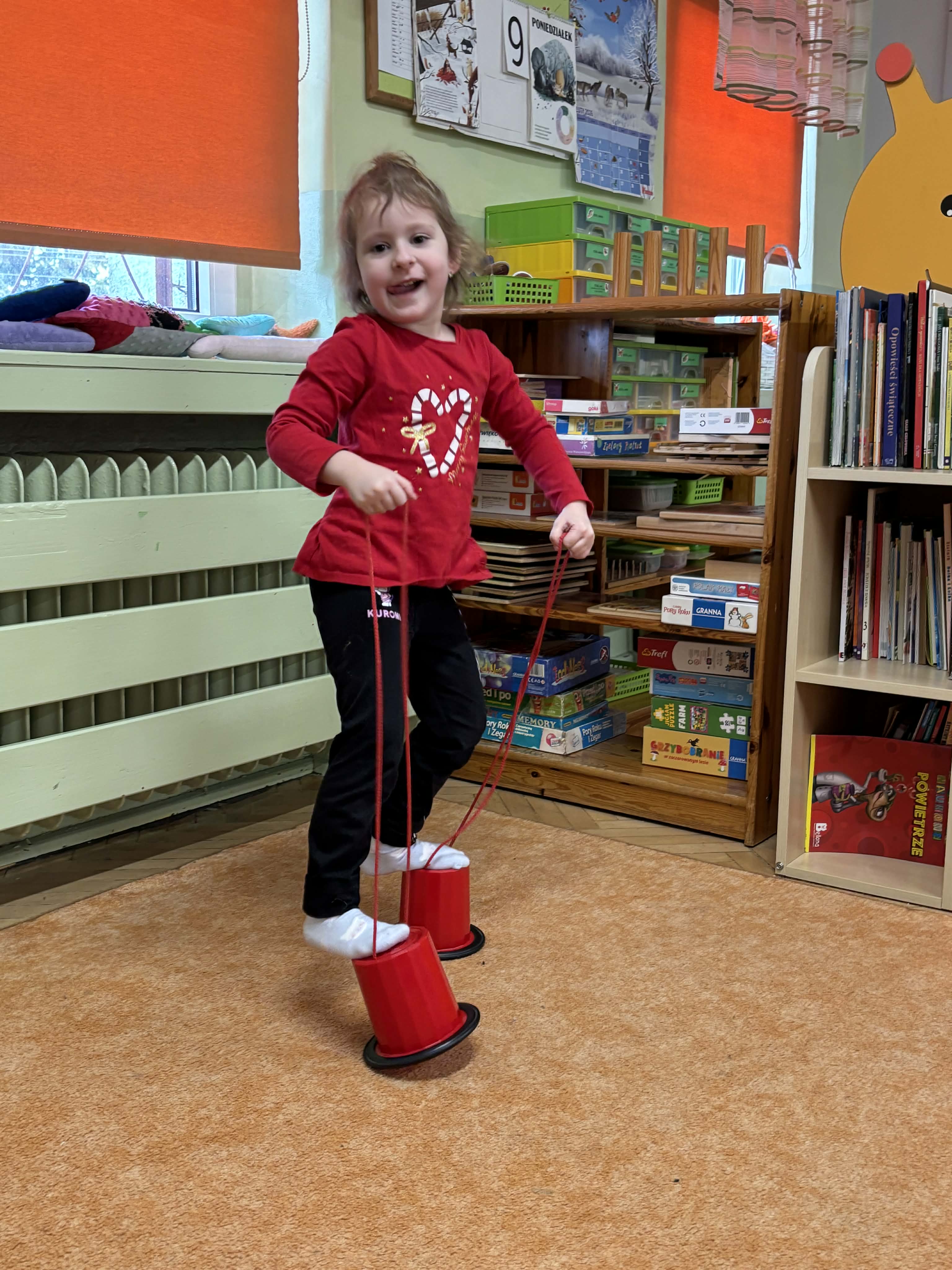 • Zabawy cyrkowe rzucanie kulkami do obręczy, chodzenie na szczudłach.