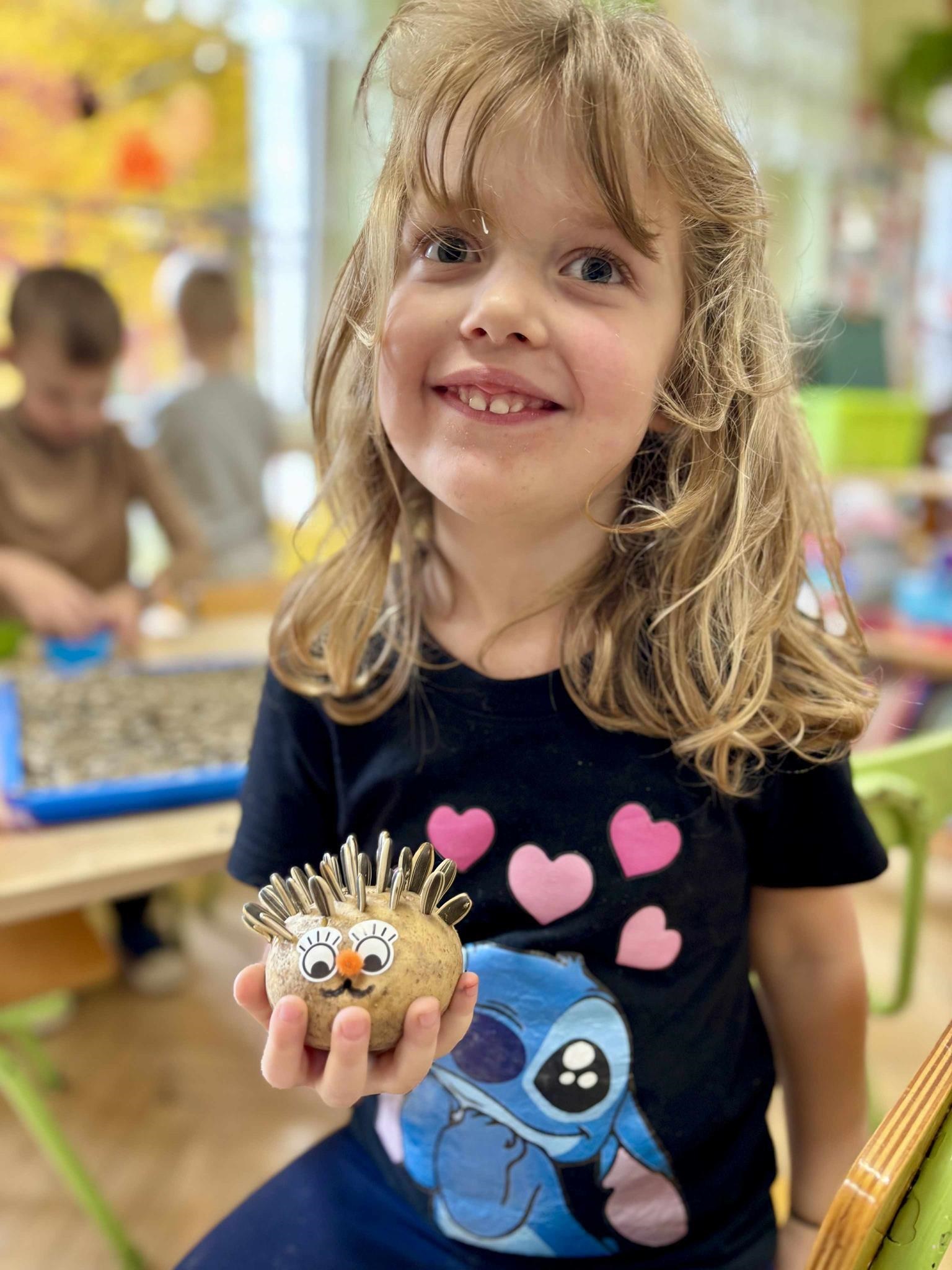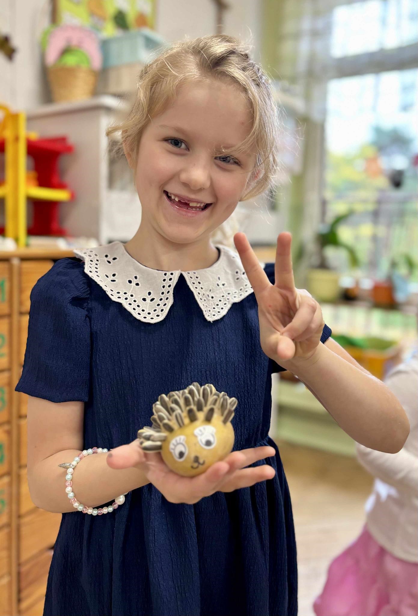 - Zabawa plastyczna "Idzie jeż" wykonanie zabawnych jeży z ziemniaków i pestek słonecznika.