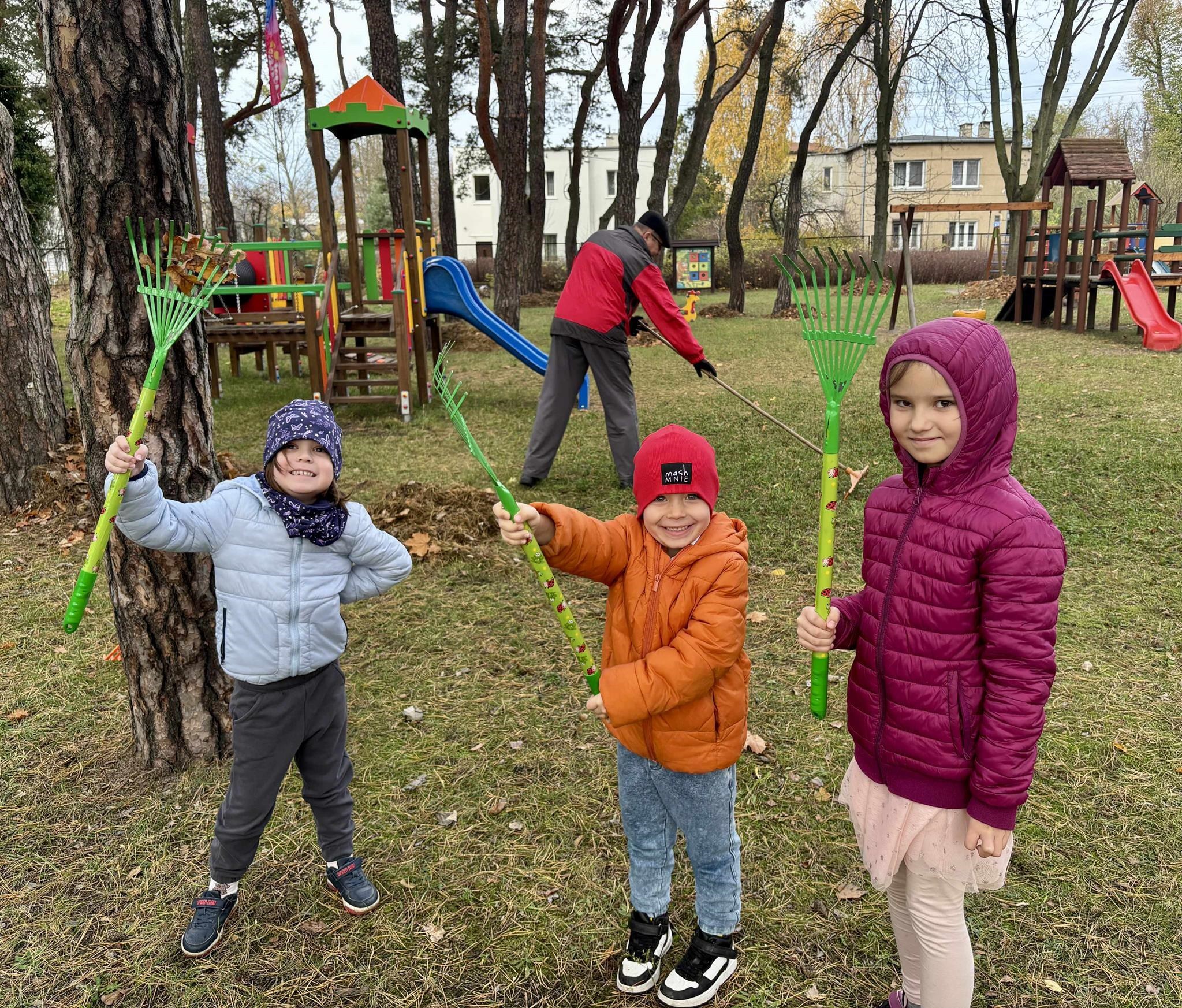 - Zabawy ogrodnicze, grabienie liści, porządkowanie ogrodu.