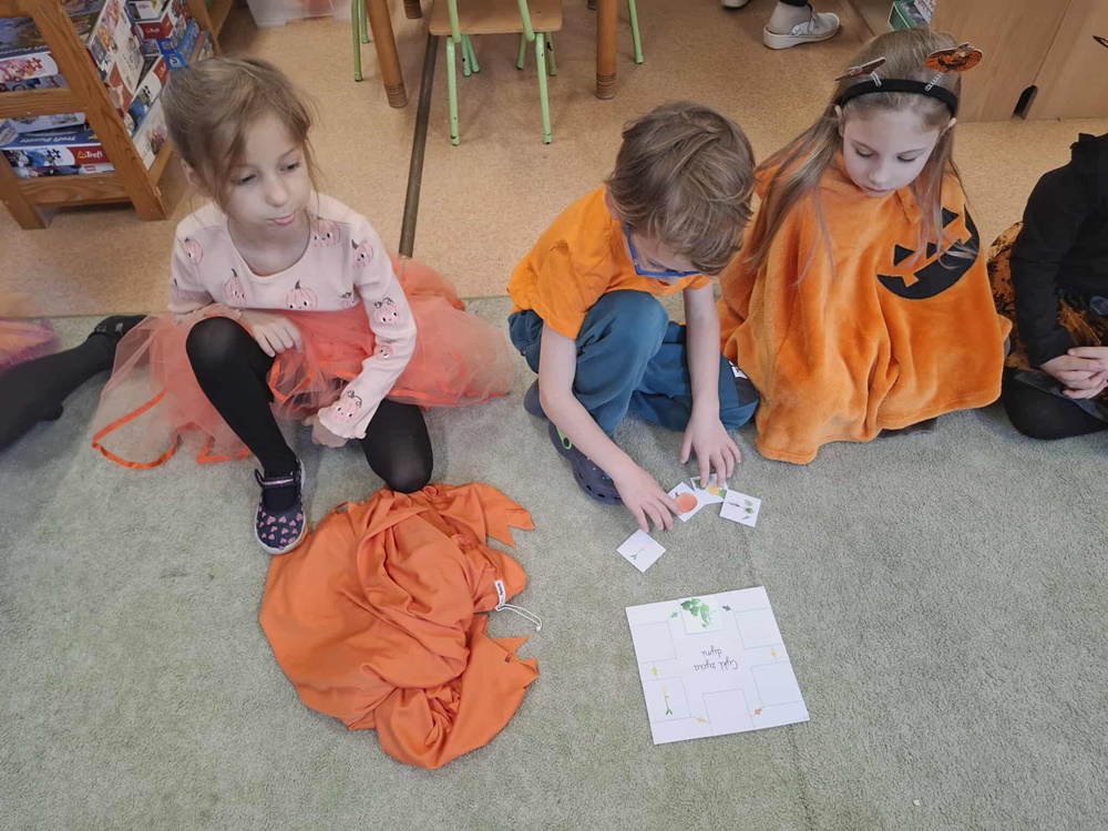 - Nauka piosenek: „Kurki, rydze i maślaki”, „Pani jesień”, „Dynia jak litera d”.