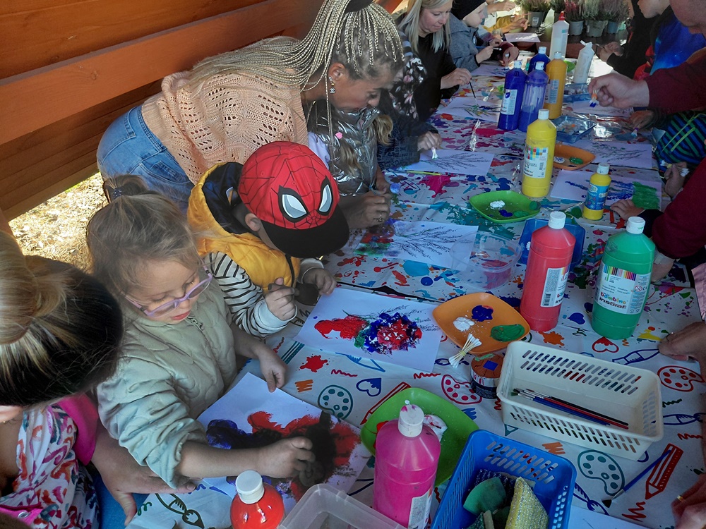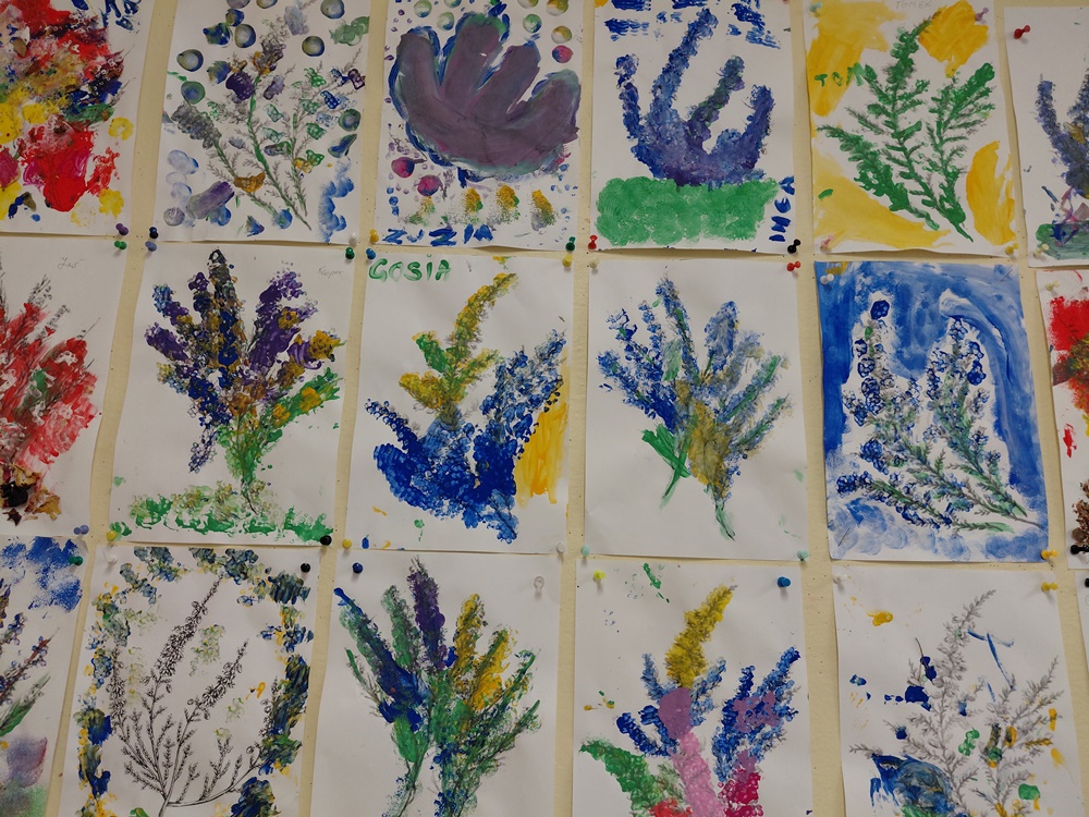 - Prace plastyczne na temat jesieni- malowanie farbami, wyklejanie papierem kolorowym , bibułą.