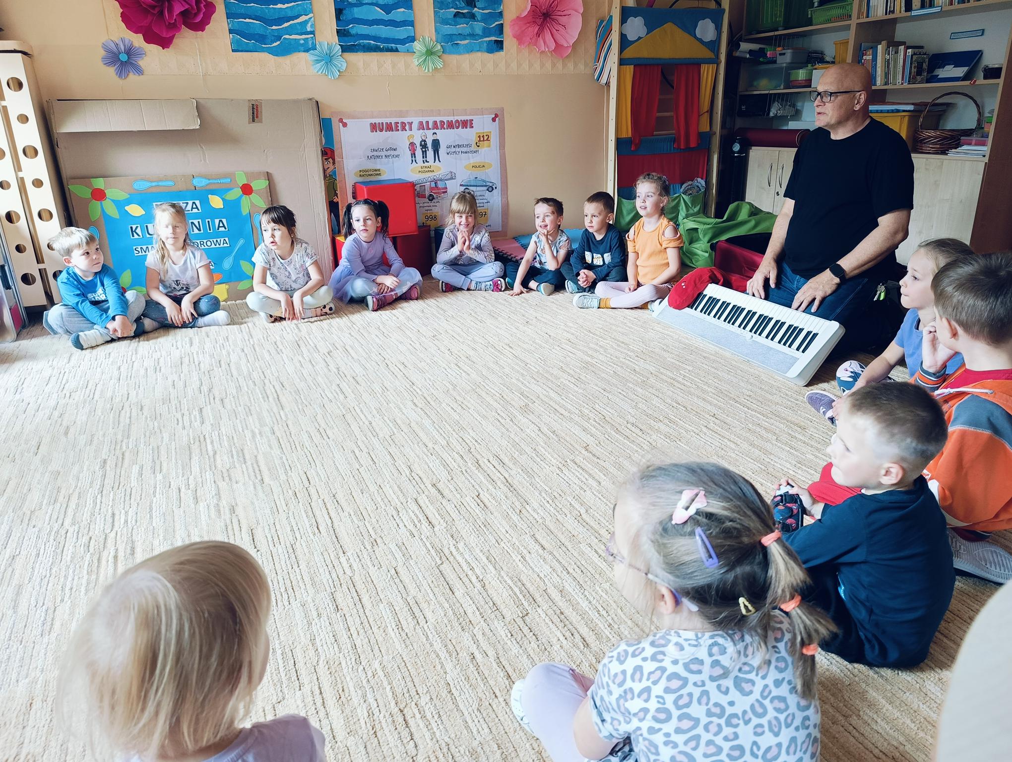 - Zabawy muzyczno-ruchowe: „Adam 7 synów miał.”,” Uwaga na muzykę”, „ Idę i stop”.
